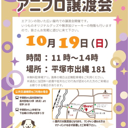 2025.10.0910/19(日)湘南平塚で譲渡会を開催します!